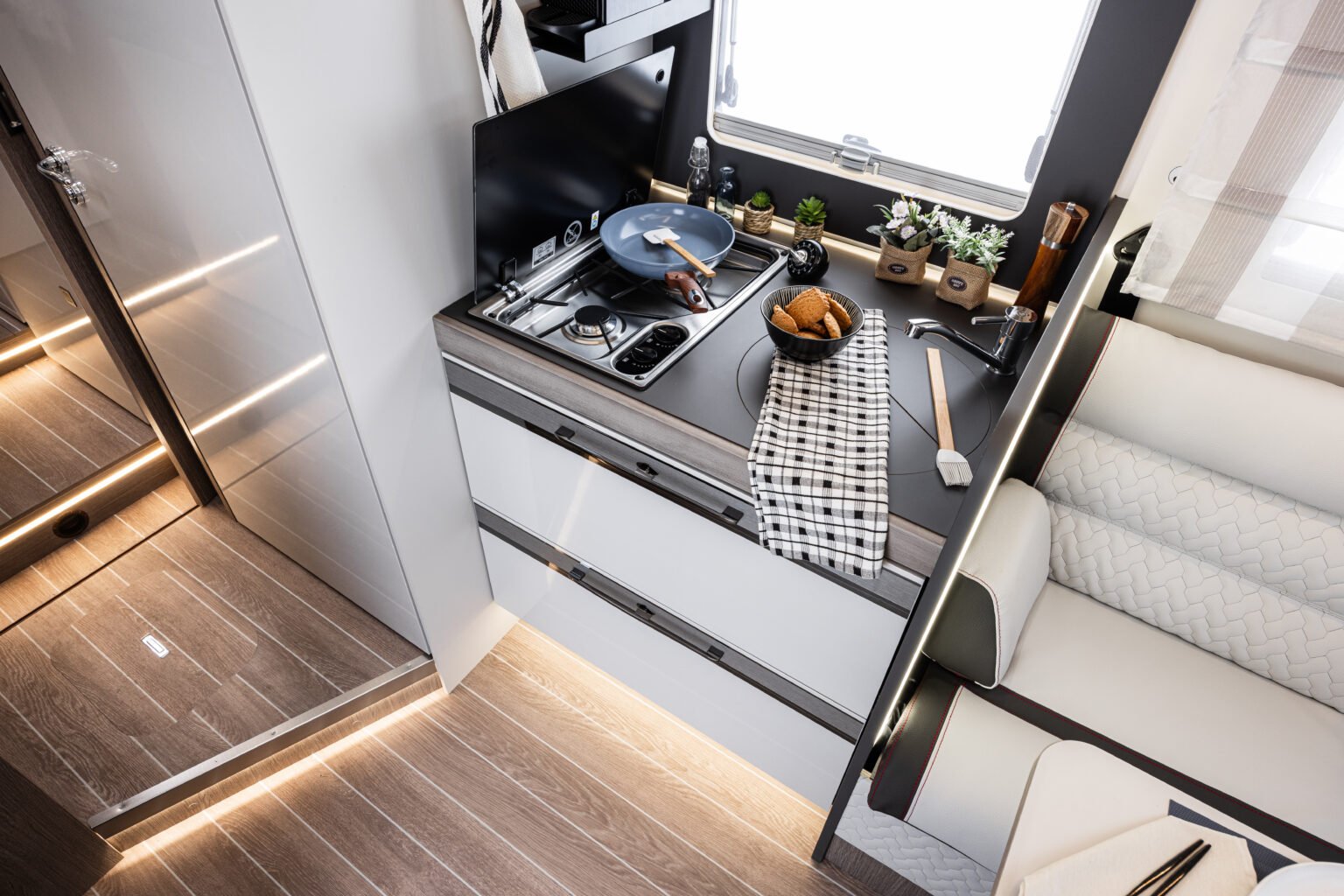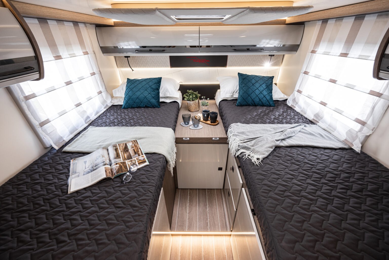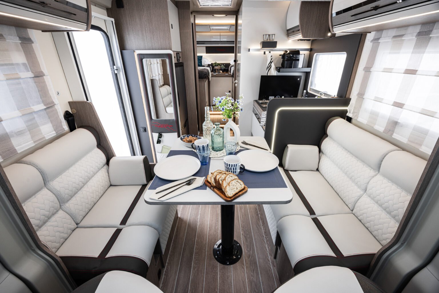 Il semintegrale per chi cerca autonomia, spazio e il giusto stivaggio. Dinette face a face, toilette indipendente con vano doccia separato e letti gemelli.